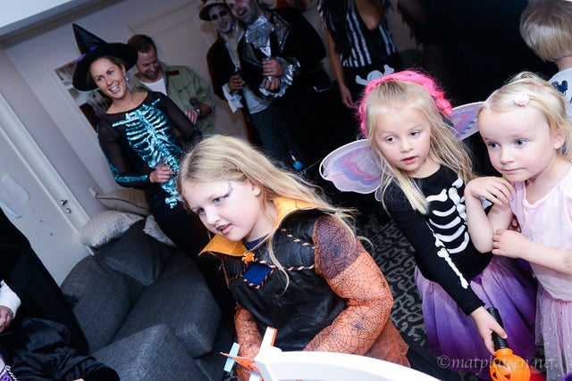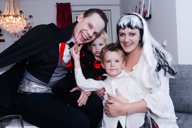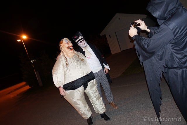 Resten av familjen var demoner, vampyrer och pumpor – och resten av gänget en salig blandning av superhjältar, häxor, älvor, spöken och gastar. Och en otroligt läskig sumobrottare som nog gav alla gåshud.