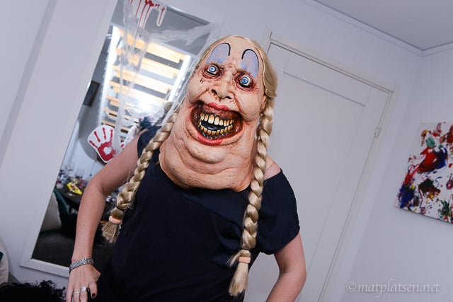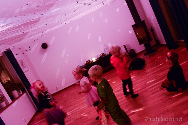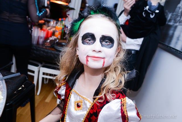 Först en runda ”Bus eller godis” i området (och vi var långt i från de enda, mötte på massor med små spöken och häxor och skrämmande typer) och sen bjöds vi på läskig buffé hos födelsedagsclownen (alltså allvarligt, vanliga clowner i sig är ju läbbiga men Stina gav mig nästan mardrömmar!!).