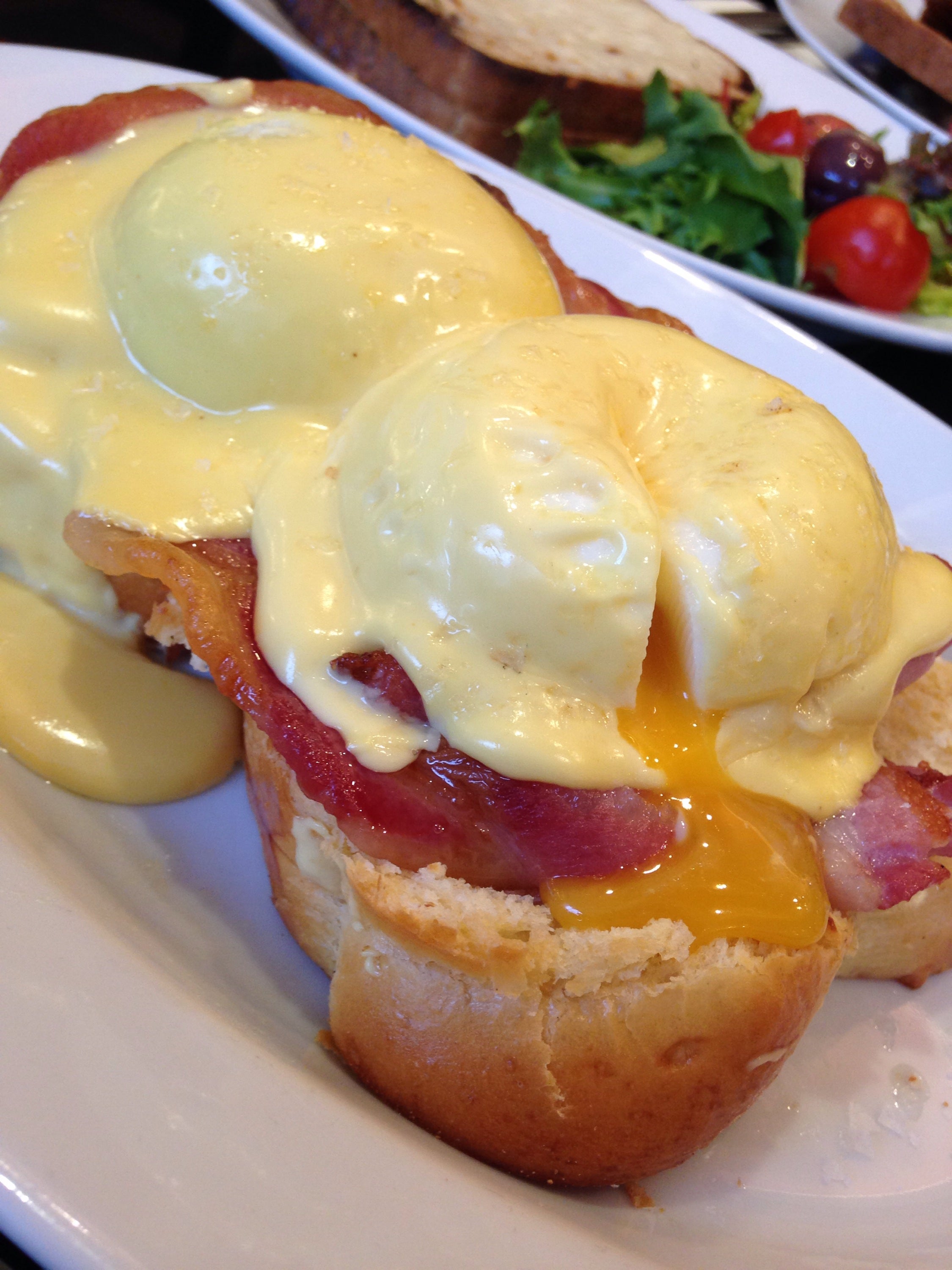 Åt ljuvlig Eggs Benedict i morse (vi skippade hotellets frukost, för övrigt det vidrigaste hotell jag bott på nånsin, berättar mer sen)