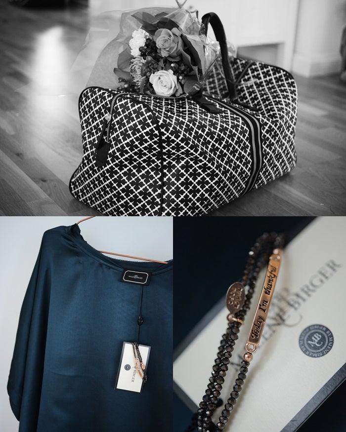 Stora övernattningsväskan by Malene Birger/Raglady – rymmer allt och lite till! Och min kvällens var petrolfärgad silkig top (här) och smycken (här) och till det svarta kjolen från H&M som jag visst bor i.