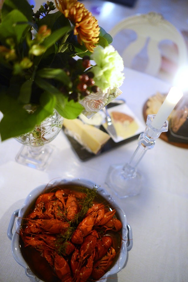 Gissa om jag blev sugen på kräftor efter att ha sett bilden med den stora skålen fylld med kräftor och alla goda ostar i bakgrunden – vill ha