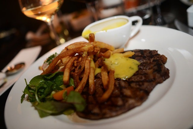 I väntan på bordet blev det fantastiskt goda drinkar i Vinbaren (fråga mig inte vad det var, bartendern fick fria händer, men gott var det!) Till förrätt beställde jag löjrom med brioche och till huvudrätt Rib Eye med bea och pommes. Den tar jag alltid men det är ju såå galet gott!!!! Fick köttet perfekt stekta (det svåra med kött annars) och deras pommes är mankaninteslutaäta-goda. Så goda så vi orkade ingen dessert.