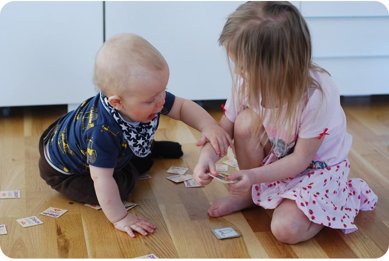 Olivia försökte lära Sebbe spela memory lite tidigare. Gick sådär. Sitt inte på speeeeeelet. Äääät inte på dem. Du får inte ta miiiina Seeeebbeeee! Snora inte på spelet!!!! Det är inte diiiiin tuuuuur nu!!! – Mamma herregud han är ju inge smart.