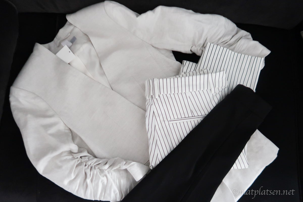 Shoppade lite vårnytt på H&M, en linnekavaj, vita randiga byxor och mjukiskjol. Kikar man ut i dag är det inte direkt läge att börja använda dem dock, det har snöat i gen och marken är alldeles vit. Wtf! (ska vara sol och plusgrader resten av veckan så jag låter det passera ;))