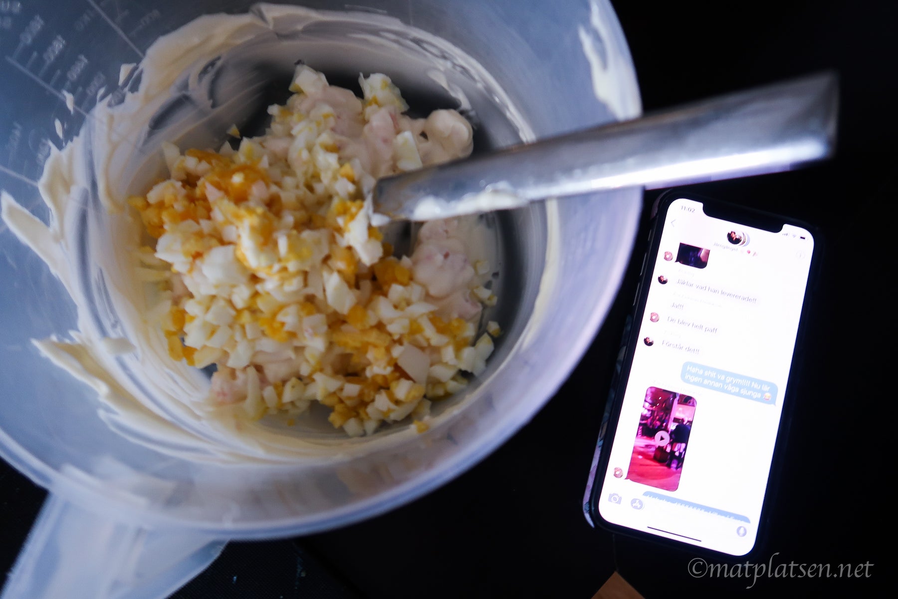 Tänkte göra din laxpaj med romsås till midsommar ska räkorna vara i såsen eller på pajen?