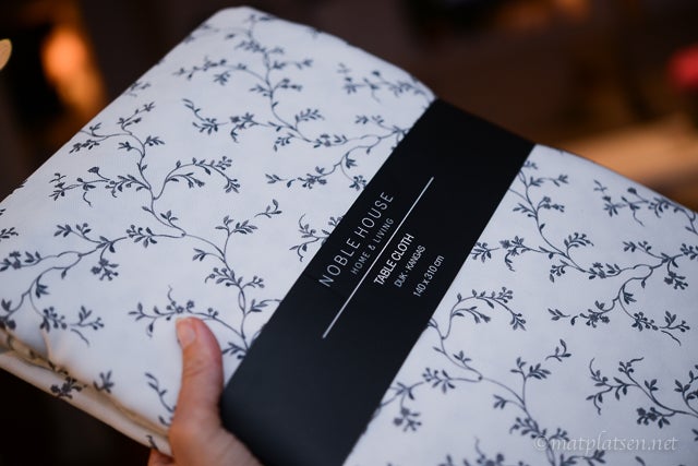 Först måste jag slå ett slag för min nya duk. Letat efter stora dukar (behöver minst 3 m till vårt bord) och det är ju inte lätt att hitta men så snubblade jag över denna, 199 kr (!!) och skrynkelfri (!). Tvättade, tumlade och la upp den, inte en skrynkla. Kap! (fann den HÄR och en annan stor gammelrosa duk jag får visa senare).