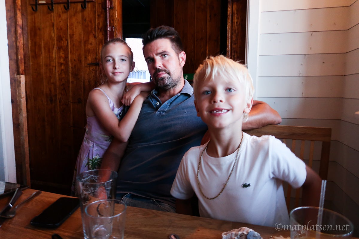 Strosade på bryggan och hamnade på Grebys. Har ni tips på nån annan restaurang som är bra? (även för barn). Förra året när vi åt där så var vi supernöjda men i år hade vi lite osis. Dels dröjde maten olidligt länge, Micke fick in alkoholfri öl, havskräftorna var små som räkor (öppna klorna var inte ens att tänka på) och räkorna ännu mindre och brödet mögligt. Blev kompenserade med att de bjöd på barnens mat och allt var ju gott (och supergulliga personal) men provar gärna något annat ställe i dag. Tips??