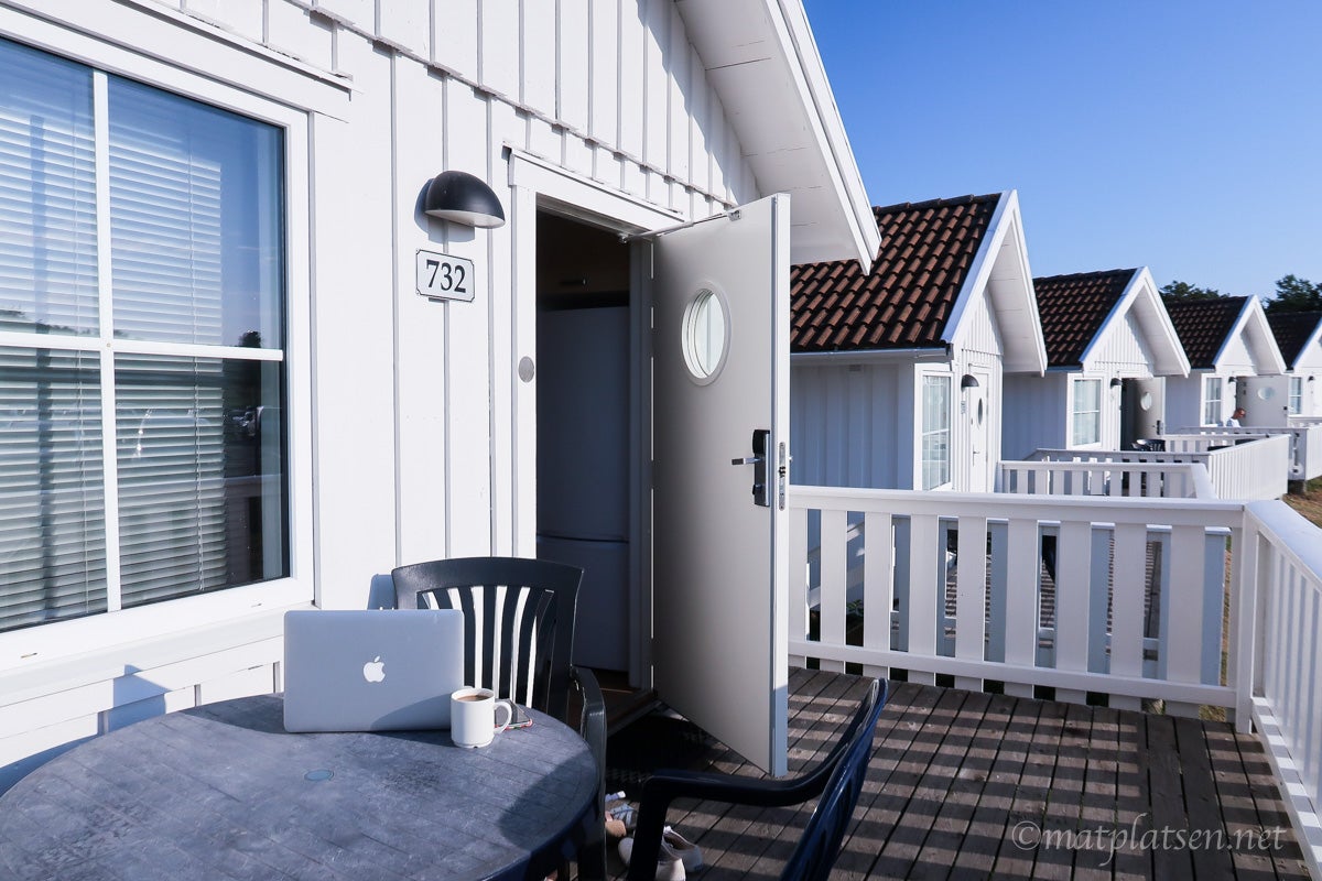 Första kvällen på länge vi var i säng innan midnatt. Gjorde oss nog gott. Vaknade tidigt och tassade ut och satte mig på vår lilla altan med en kopp kaffe medan de andra sover/drar sig. Killarna snarkar fortfarande 1 h senare men ska väcka dem också nu så vi inte sover bort den korta tiden här. Riktigt svalt och skönt väder, 22 som varmast ska det vara i dag men nu börjar det redan bli rätt varmt här ute. Bad står först ut på schemat!