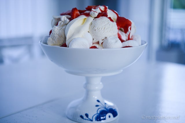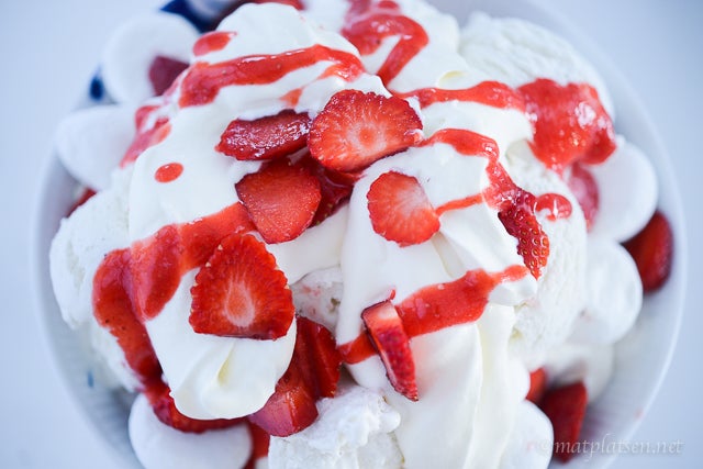 Något gott i sommarvärmen? Jordgubbsmarängsviss! Busenkelt och galet gott. Jag kör med färdigköpt glass och färdiga maränger, ibland vill man ju bara att det ska gå snabbt och det är ju nästan lika gott som hemlagat 🙂