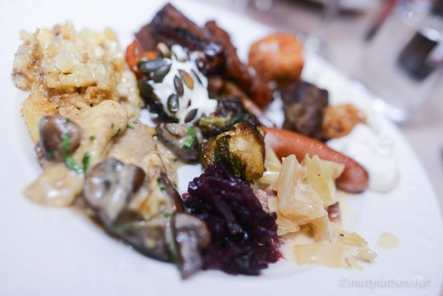 Jag har nog aldrig blivit så mätt dock, åt inte hälften så mycket som jag velat. Var för hungrig när jag kom och blev tvärmätt snabbt. Men det jag åt var galet gott!! Särskilt det varma, bästa revbenen, friterad brysselkål (hur gott!!), perfekt jansson och annat gott.