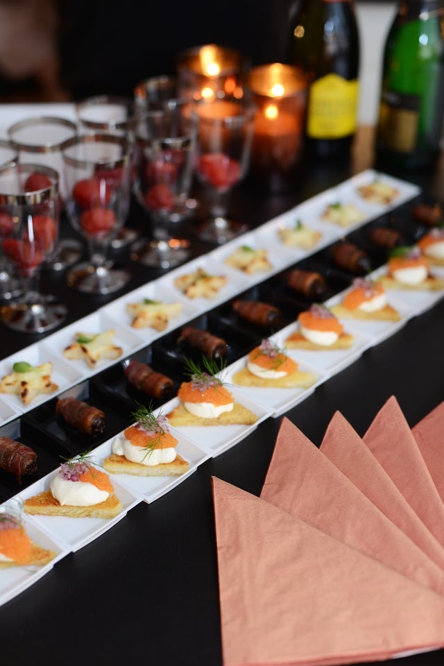 Det var löjromstoasts, gratinerade chevréstjärnor och baconlindade dadlar. Och rubbet som jag serverade dessa på kommer från DUNI och jag bara älskar fina engångsprylar. Så smidigt och finns ju så mkt kul och snyggt. Glas, mingelbrickor (såna man hänger sitt glas på, favvo!), miniassietter, kopparservetter och ljusen hittar ni där. Och i samarbete med DUNI får ni just nu 20 % på ALLT (utom nedsatta varor) fram till 31/1 2015 så passa på att bunkra inför glöggfester, jul och nyår.