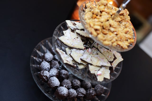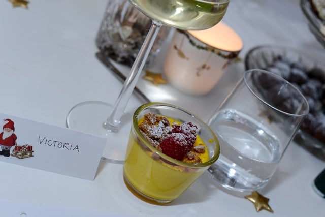 På min lott till julbordet stod ”drinktilltugg” så jag serverade bubbel med jordgubbar och till det 3 små aptitretare.
