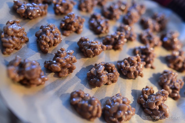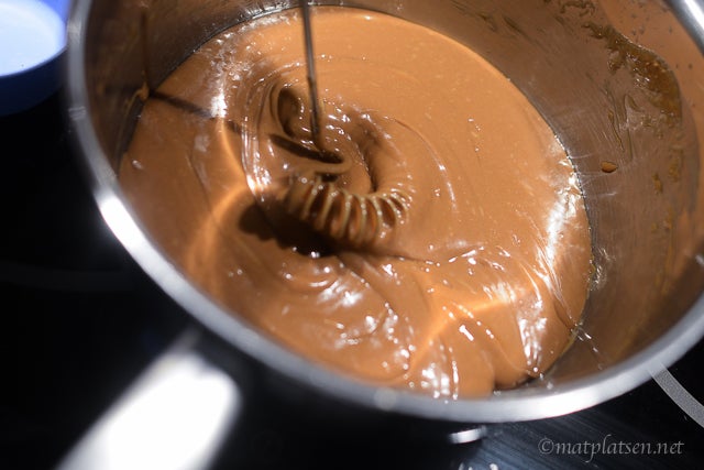 Gjorde en omgång i dag. När man smälter marsen i smöret så blir det först en grynig blaskig sås. Fortsätt röra röra röra plötsligt ser den ut som den håller på och skära sig – fortsätt bara röra. Och vips så blir den en tjock slät smidig tjock kräm. Ta den genast från värmen då och blanda ner ricekrispisen. Klicka upp på bakplåtspapper och ställ kallt. Tadaaaa. Då går det inte att misslyckas 🙂