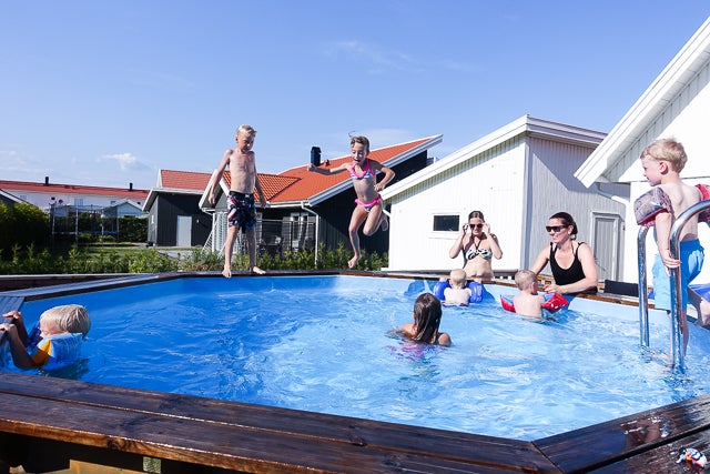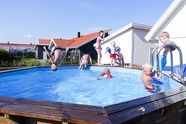 Lilla grannen Eddie fyllde 3. Sebbe valde present själv. Den låter som tusan så Eddie var nog gladare än föräldrarna, hehe. (Om det är nån tröst så har Sebbe en han med så vi får vår dos av oljud). Det var kakbuffé och poolparty, hoppborg och hamburgergrillning. Och nog årets varmaste dag! (börjar tro barnen fick värmeslag och feber därav?)