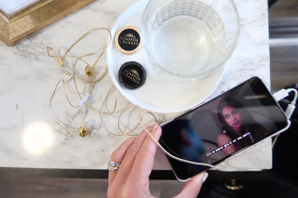 13.00 .. och fortfarande i frisörstolen. Passar på att jobba via mobilen och redigerar inlägg