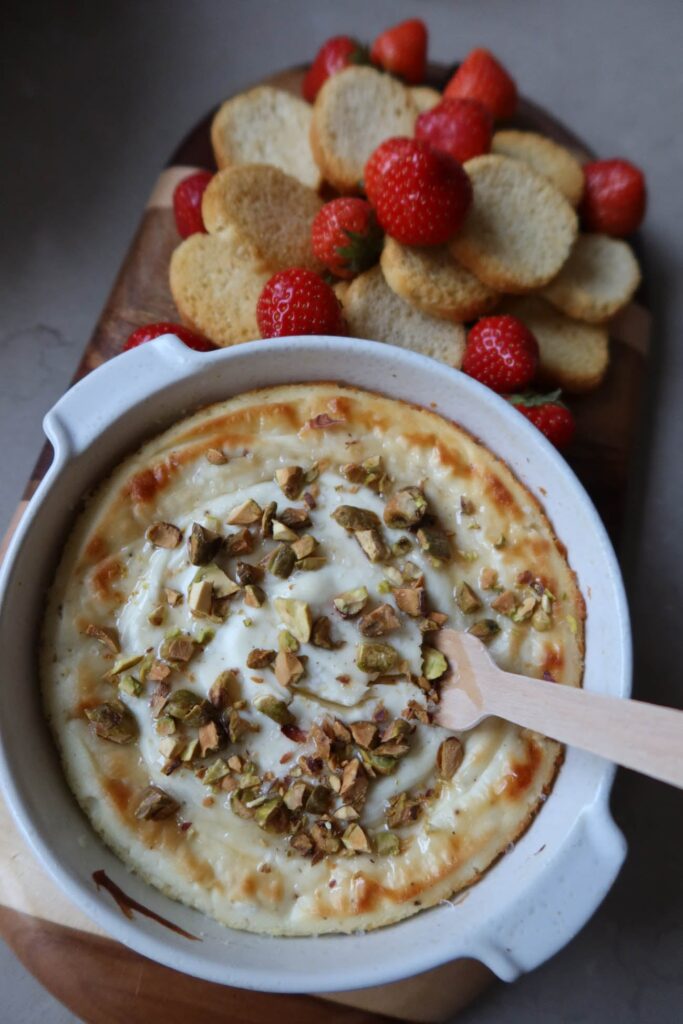 Bakad getostdipp. Denna röran är så god att doppa crostini i eller servera på ostbrickan.