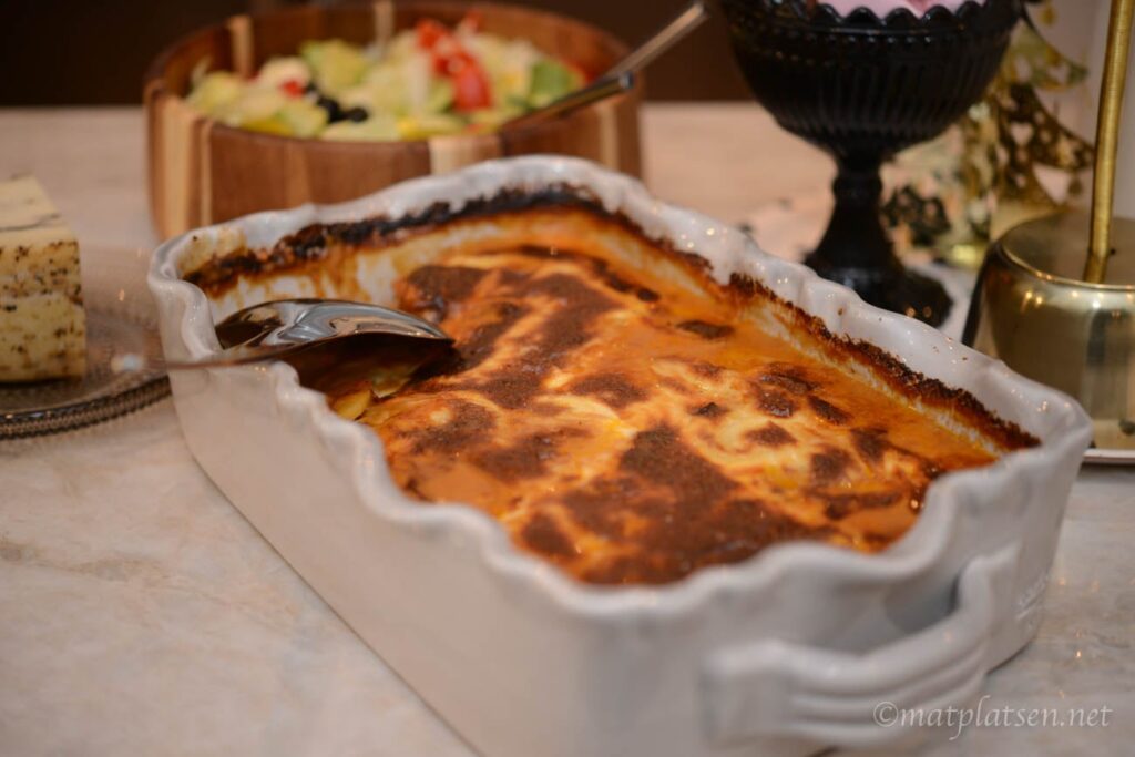 Detta är en favorit här hemma hos stora och små. En potatisgratäng med köttfärssås i.