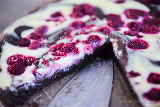 Det närmar sig kladdkakans dag. På lördag smäller det! Brukar inte bry mig så nämnvärt om alla dessa dagar, finns ju en för varje bakverk vid det här laget, men just kladdkaka kan man ju inte motstå och en lördag och allt. Barnen har önskat en vanlig klassisk kladdkaka så det ska de få, och själv tänkte jag prova en ny variant. Återkommer med resultat av den på lördag. Men nu tänkte jag tipsa om en goding vi gjorde härom dan, en kladdkaka med cheesecakeswirl och hallon – maaaaagiskt god!!