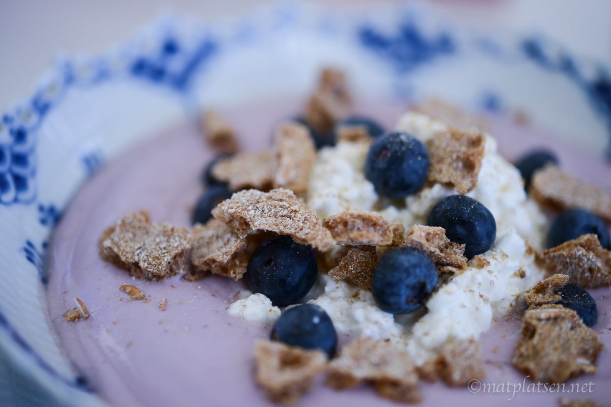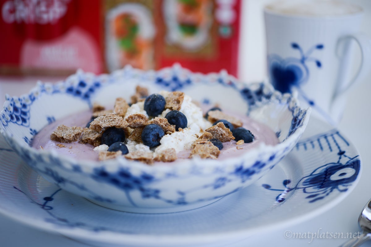 Tokig i blåbär just nu. Och blåvitt porslin som alltid. Finporslin, frukost och Finn Crisp. En strålande start på dagen 🙂