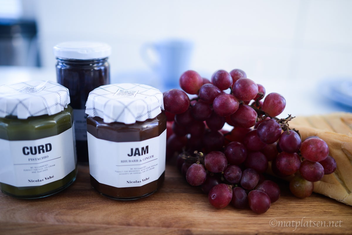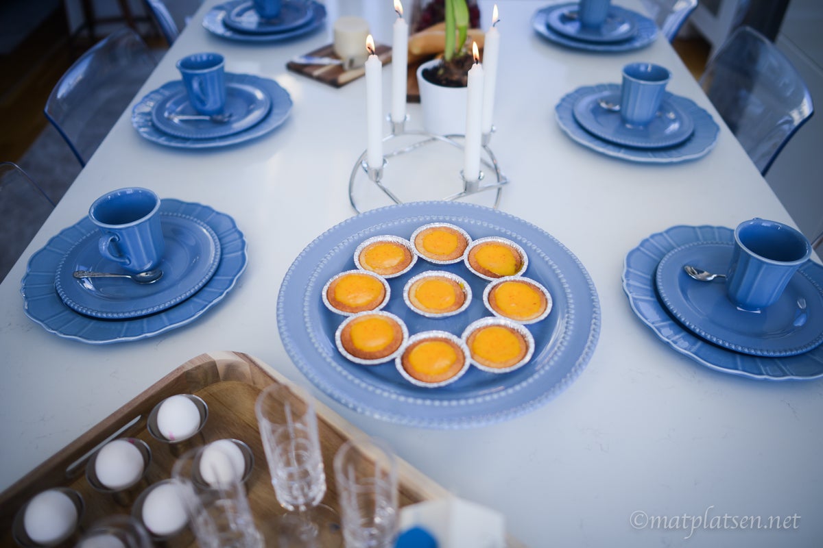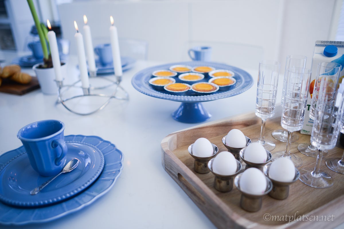 In My Kitchen finns exklusivt i webshoppen (därifrån kommer den vackra blå keramiken som ni finner HÄR, serveringsbrädorna HÄR och brickan HÄR) och de vackra äggkopparna som jag alltid får så många frågor om finner ni HÄR. Ljusstaken från Georg Jensen finns HÄR, den är såå himla fin och klassisk. Kladdmuffinsen har jag bakat i DENNAoch sylt och curd mm finns HÄR