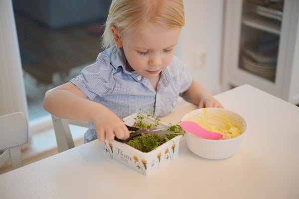 Nu minsann har krassen växt så det knakat i vårt lilla växthus. Och min lille fick äran att skörda 🙂
