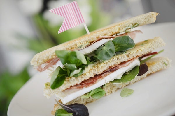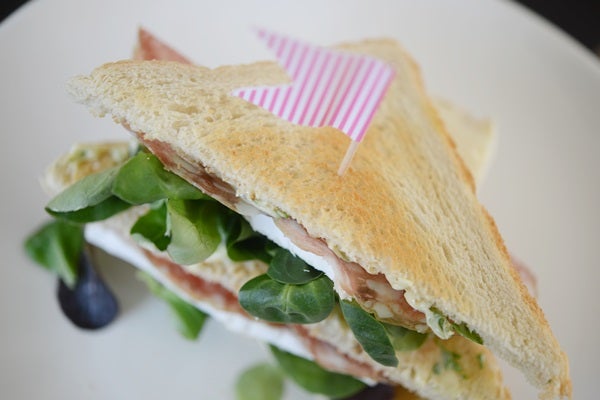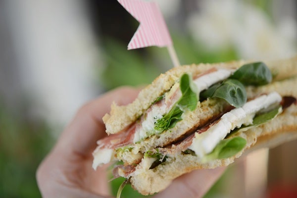 — och sedan toppades de med majonnäs, sallad, krämig brieost och tunna skivor salami.
