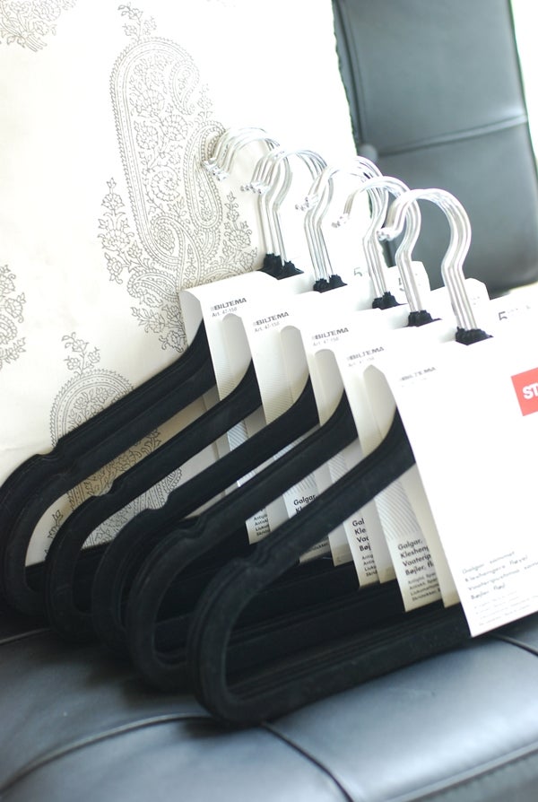 Och sen måste jag bara tipsa om BÄSTA GALGARNA EVER! Tunna och smala så de tar ingen plats i garderoben och sammetsytan gör att inget ramlar av. Ett 5-pack kostar ynka 19.90 på Biltema och finns i olika färger. GRYMMA!! Har bytt ut varenda galge i min garderob till såna här nu, tjoho! (för visst blir man gaaaalen på alla plagg som trillar ner i botten av garderoben eller dinglar i ena axelbandet så man inte hittar dem och för att inte tala om alla galgar man sparat på sig genom åren där ingen är den andra lik och spretar åt olika håll.)
