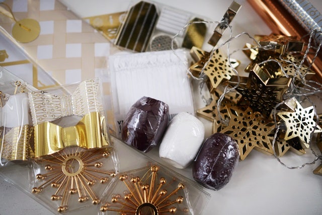 IKEA-shoppingen. Julpynt och papper i guld/rosé/koppar/vitt, varsin minigran till barnens rum att pynta som de vill och inte minst det gaaaaalet goda chokladpålägget. Så himla gott, ni måste prova! Med små små krokantkrispbitar i och perfekt chokladsmak. Och sen köpte jag en ”stad” med belysning, svår att fota men ger jättefint ljus. Ska ställa den i sovrumsfönstret.