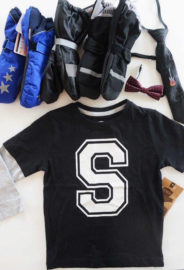 Inte riktigt min stil på varken vuxen eller barnkläder men det fanns som med allt annat lite smått och gott. Till Sebbe hittade jag en tröja med bokstaven S (han älskar allt med bokstaven S eller siffran 3 :)) och en massa bra vantar för inga pengar alls. Särskilt de som kallas ”dagisvantar” (ca 39 kr tror jag) som är vattentäta och fodrade med det mjukaste gosetyg i, underbara. Borde köpt fler.