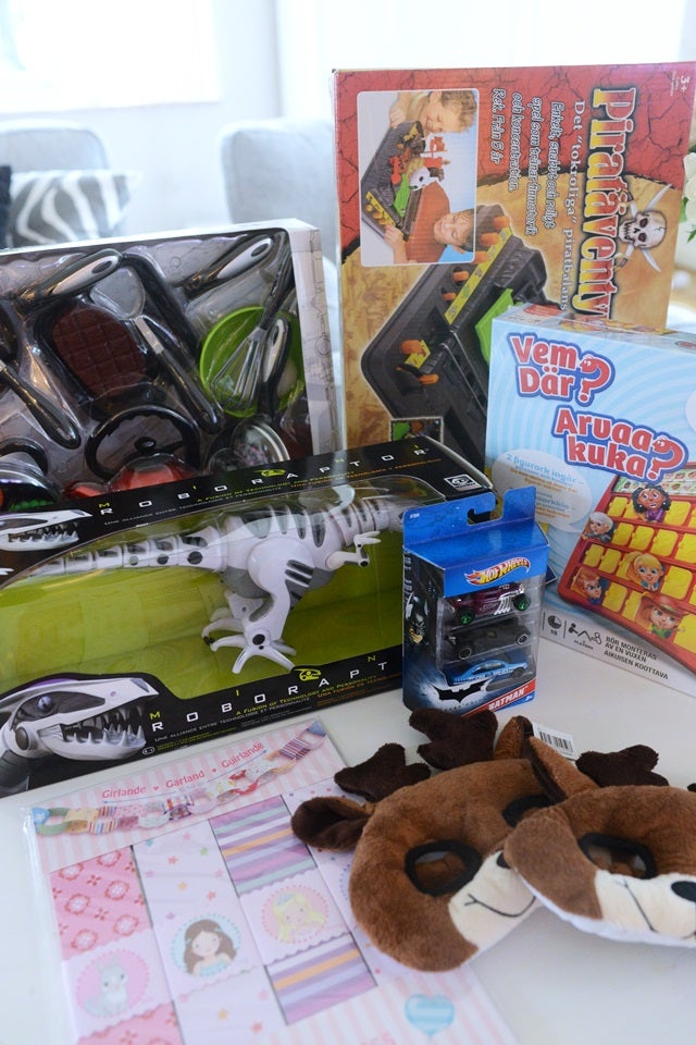Söta masker kostade ca 15 kr. Lite pyssel till Olivia och sällskapsspel till dem båda. ”Vem där” och ”Piratäventyret”, det sistnämnda hade jag nästan ett identiskt när jag var liten men det är trasigt och slitet så de får ett eget nytt nu.