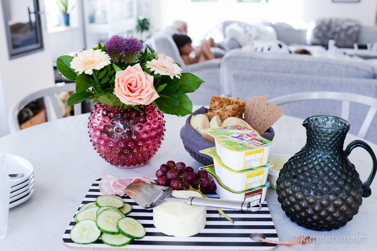 Sparsam frukost, ingen som orkar äta i värmen. Lördag så det blev lyxyoghurt från Lidl, barnens favvo.