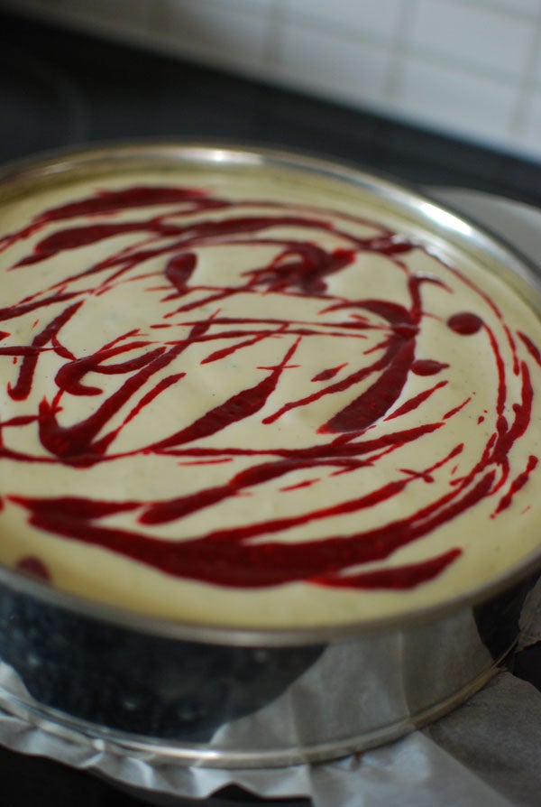 Hallonrippel: Mixa hallonen med florsocker och vatten.