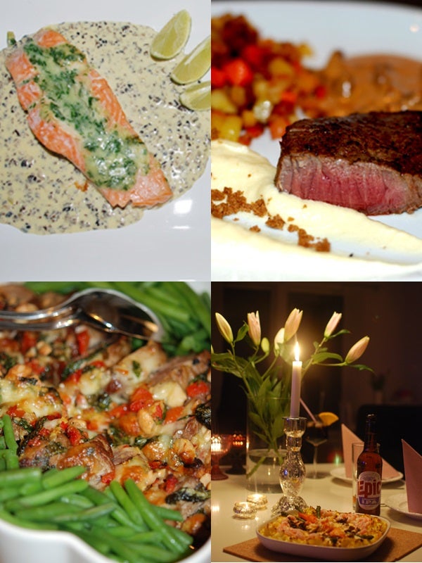 1. Bra tips! vi har planerat kräftsoppa till förrätt (på egen kräftfond), helstekt oxfilé med chevre och rödbetsknyten och rödvinssås och till efterrätt hemmagjord pistageglass med cognacskokta päron.