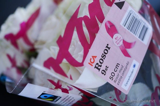 Måste bygga ut min kokbokshylla snart, den är fullproppad minst sagt. Fick plocka bort några för att få plats med dessa nykomlingar jag köpte på Ica maxi i morse. Skulle bara dit och köpa mjölk… Jojo. Kom hem med vackra rosor (rosa bandet), 2 nya kokböcker och lite annat smått och gott. Och en laxsida till kvällens middag – men jag vet inte riktigt vad jag ska göra med den bara?
