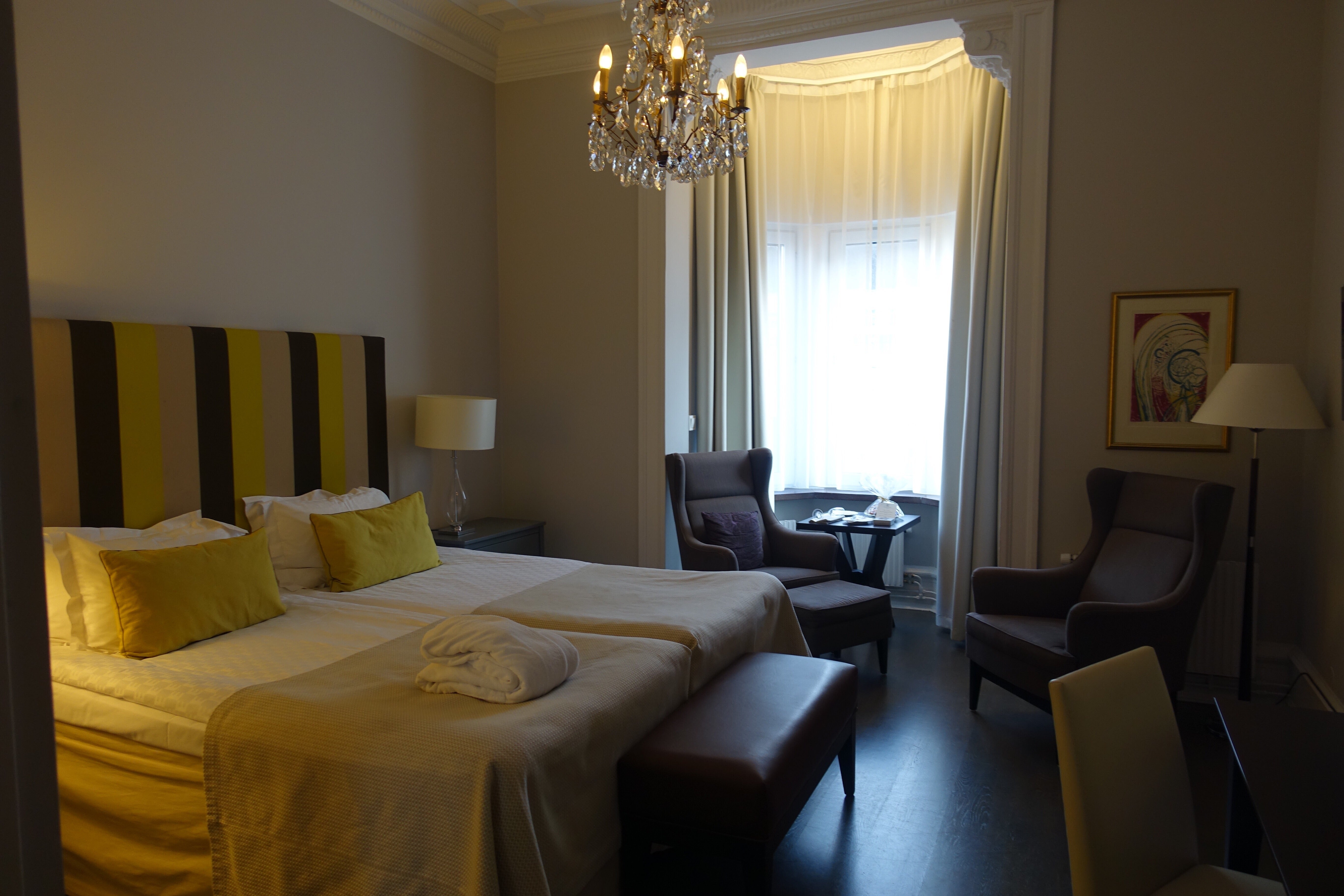 Superfräscht hotell med perfekt läge precis vid stationen. Jag fick ett nyrenoverat rum med högt i tak och kristallkrona. Här har jag sovit som en prinsessa. (Eller klubbad säl..)