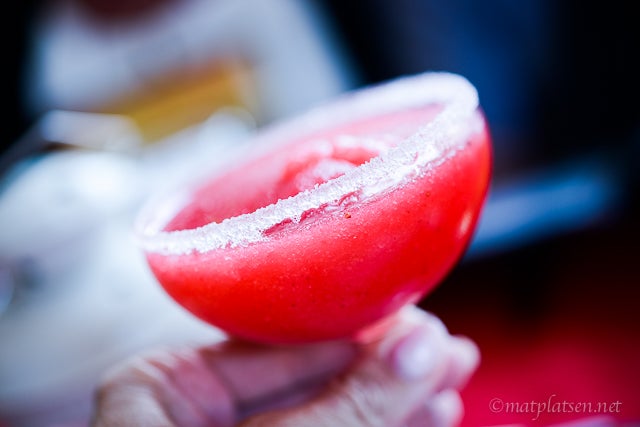 Jag åt någon slags friterade tortillastubbar med kyckling och massvis med ost och ostsås (mums), Micke biff fajitas, mamma & pappa vanliga tacos i hårda skal och barnen barntacos i mjukt bröd. Och deras omtalade strawberry margarita som var mycket god, tips tips!