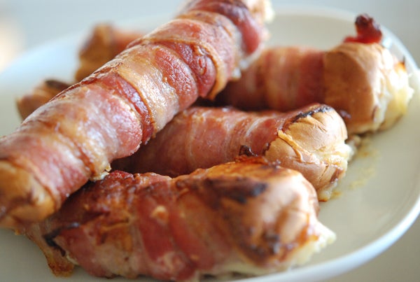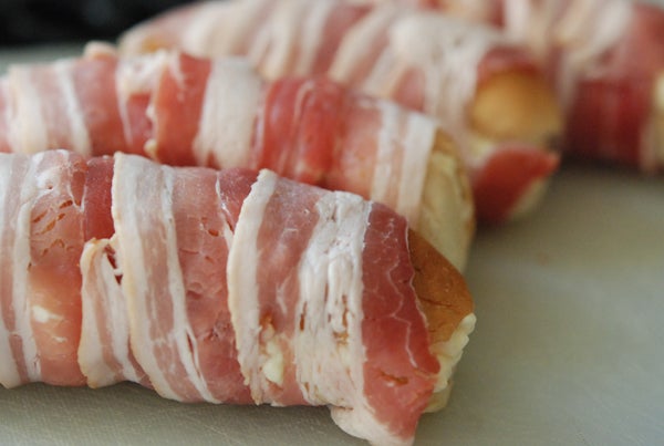 Till kvällens middag testade vi något nytt jag hittade inne hos blogg-kollegan Ulrika på Bakverk & fikastunder. Korvbröd fyllda med räkost och inlindade i bacon (2 skivor/bröd). Gratineras i ugnen ca 20 min. Visst låter det galet knäppt? Var tungen att testa och vet ni, det var huuuur gott som helst. Servera med en god sallad och något gott att dricka till.