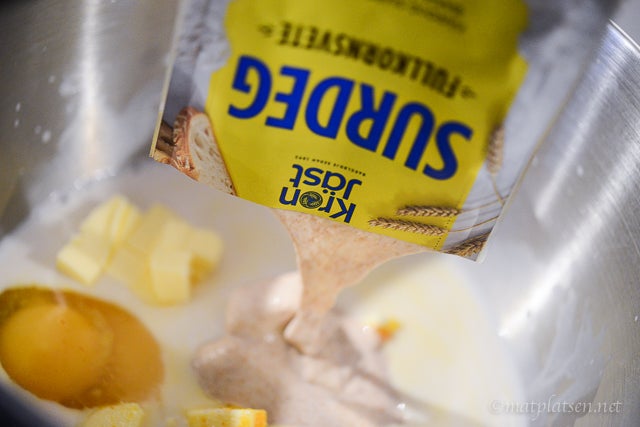 Lös upp jäst i mjölk och vatten. Tillsätt resten av ingredienserna, blanda långsamt i cirka 3 minuter och sedan snabbare i cirka 8 minuter. Degen ska släppa fint från bunken och vara elastisk.
