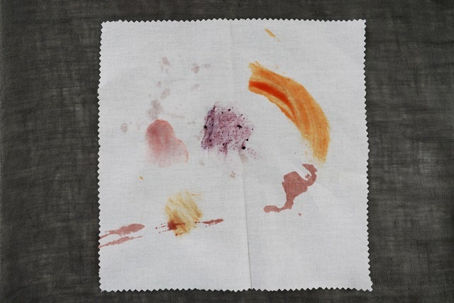Provade de värsta fläckarna jag kunde komma på på en duk. Här är mosade jordgubbar, blåbär, rödvin, ketchup och choklad.