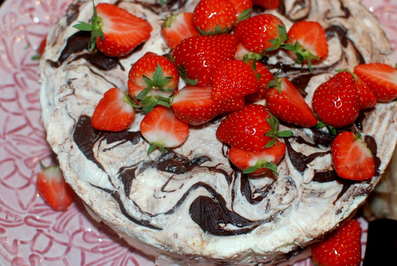Och till dessert Nutellasemifreddo med färska jordgubbar: