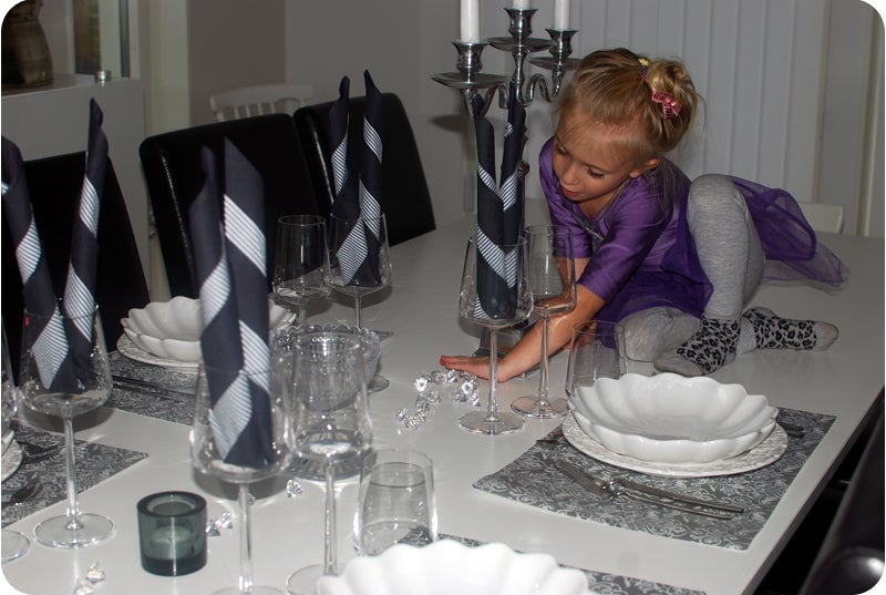 Lilla balettdansösen lägger sista handen vid dukningen 🙂 (nyss hemkommen från Hoppis & Skuttis)