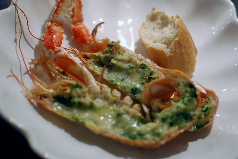 Till förrätt åt vi gratinerade havskräftor: