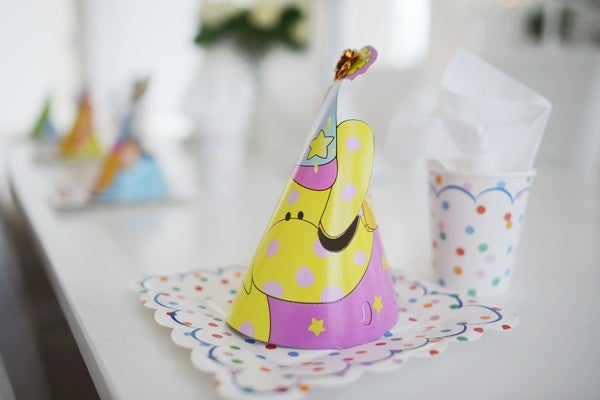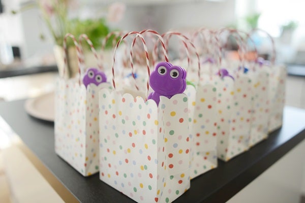 Prickigt tema på barnkalaset (påsar & dukning från Leilas Generalstore, hattar, prinskrona, grodklappor och balonger från Partytajm)