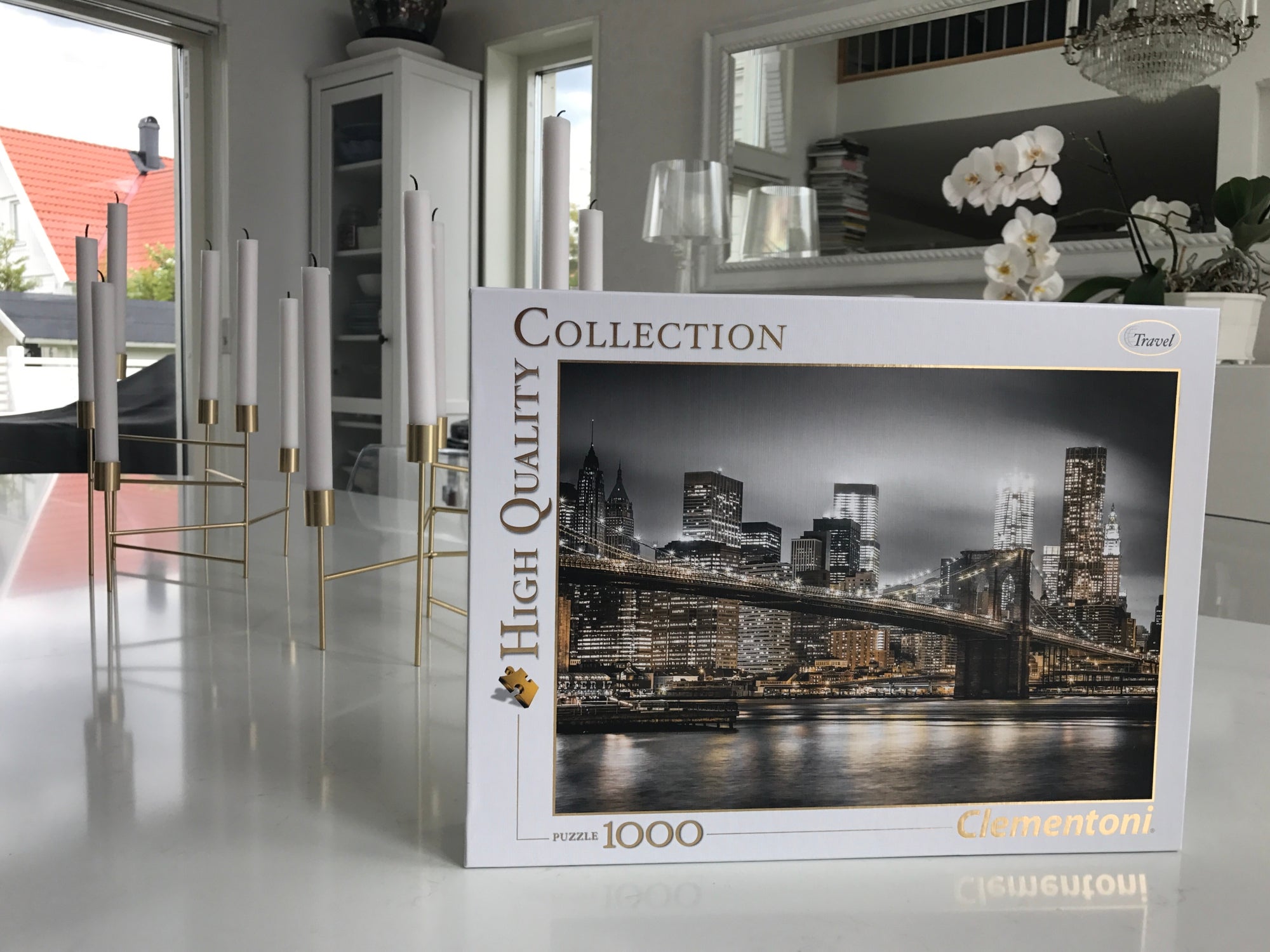 Ismaskinen (adlink) har gått varm, fyllt på en hel låda i frysen med is. Ny lampa (adlink) i kaffehörnan, ger grymt mysigt ljus kvällstid. Planen för i kväll är att börja detta pussel!