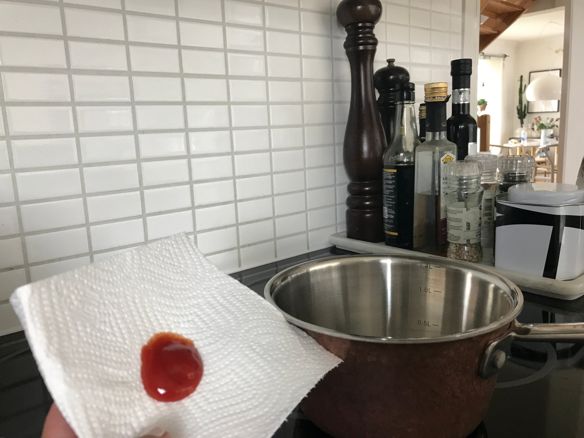 Kopparkasteullen såg inte kul ut. En skvätt ketchup (!) gjorde susen.