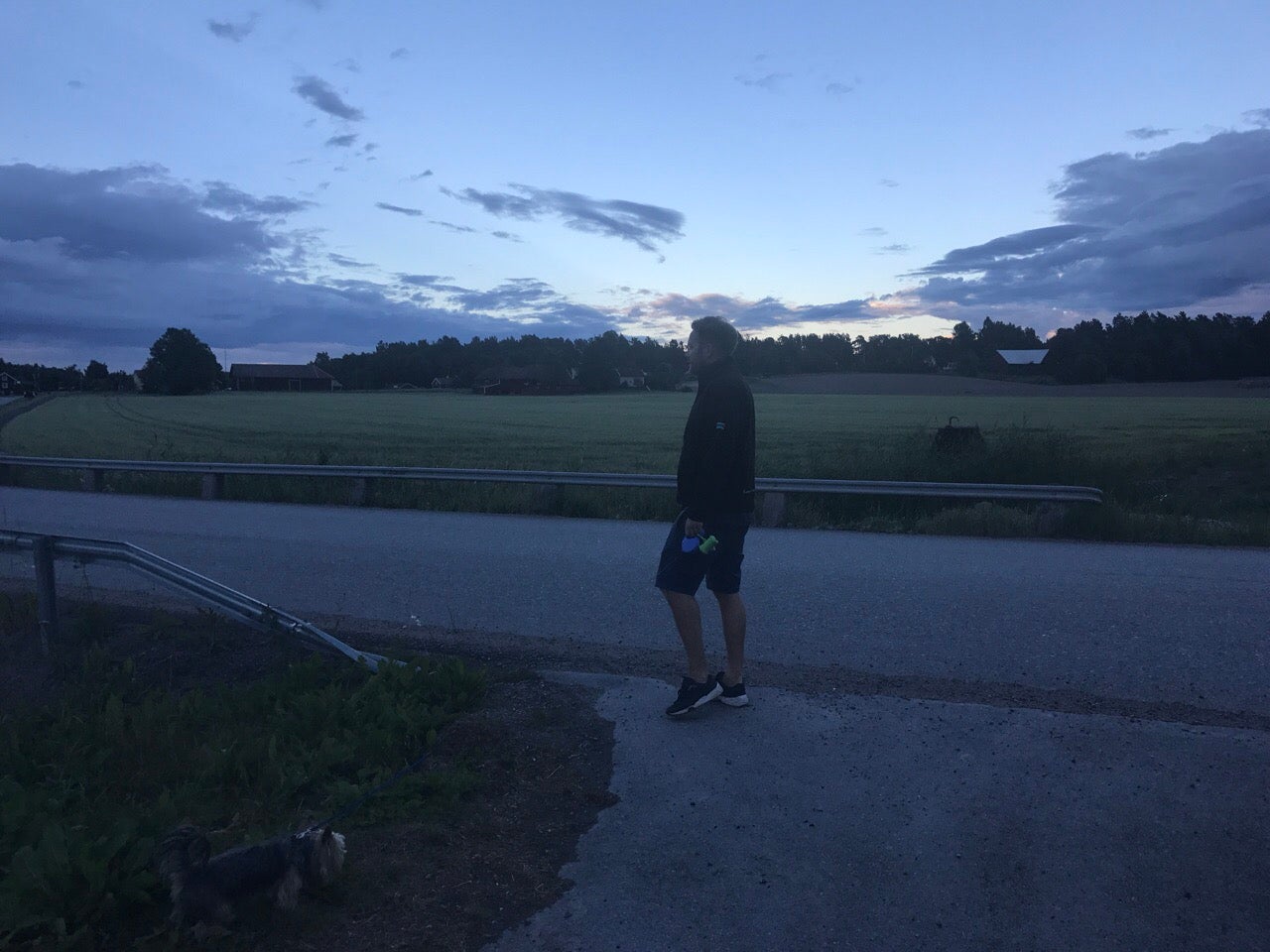 Sen hängde jag med Marcus och Harry på kvällsrundan. Hann knappt innanför dörren innan himlen öppnade sig. Snubblade nästan över Micke på golvet..