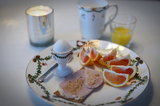 Frukost på julservisen, julmusik ur högtalarna och gran-doftande kalenderljuset tänt. Hello december-morgon! En lakritslucka ska öppnas också, är sååå nöjd med min julkalender, lakritsen är to-die-for-god! (Särskilt några guldiga kulor med lakrits doppad i passionsfrukt tror jag det var, de måste jag bara få tag i fler av!!)