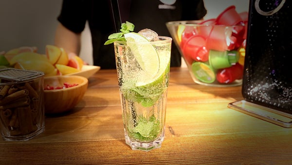 Gör så här: Kolsyra vanligt kranvatten och häll i Sodastream Night Spirit Mojito. Lägg is i ett glas. Häll alkoholen över isen, pressa i en klyfta lime och tillsätt Night Spirit Mojito drinkmix. Garnera med myntablad och en limeklyfta.  För att sätta din egen prägel på drinken, tillsätt bär som hallon eller havtorn. Servera.