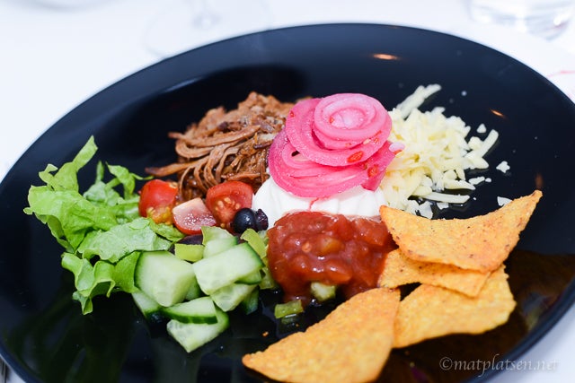 Sen åkte vi hem och gick på Melfest hemma hos grannarna och såg programmet på storbild! Bjöds på god pulled pork, mums.