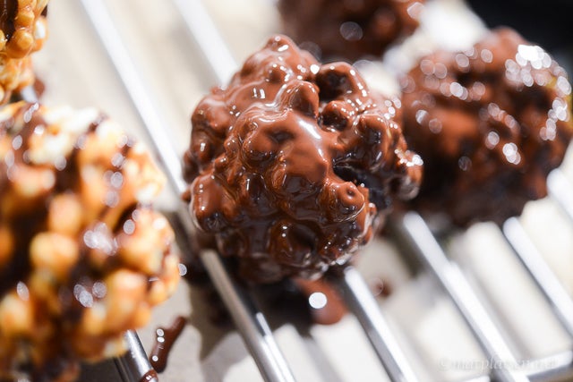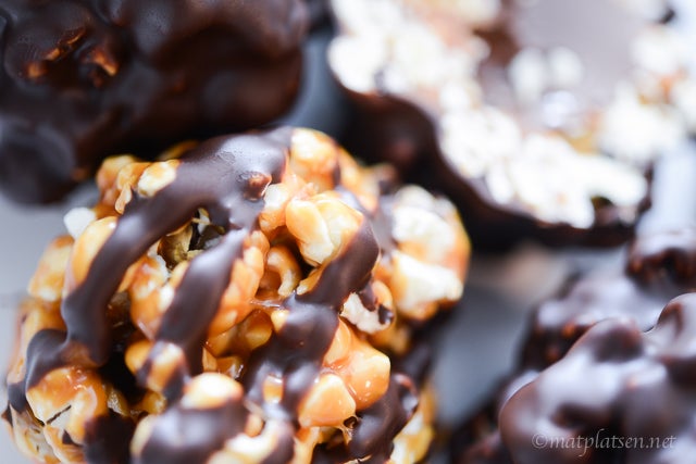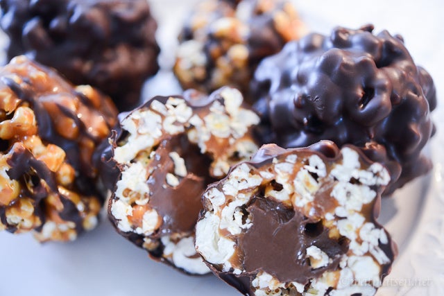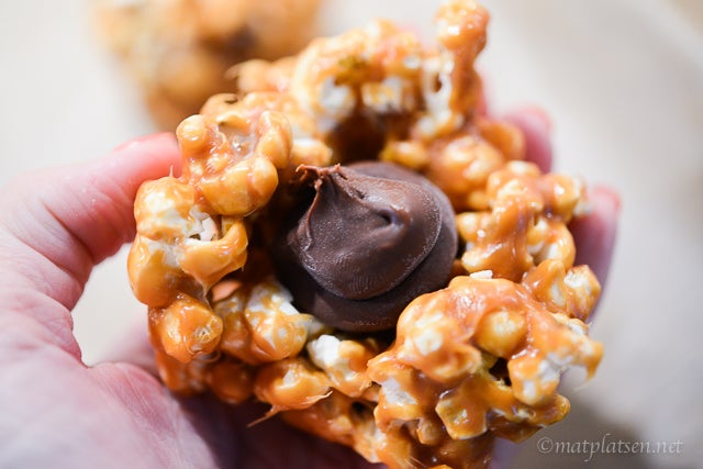 Börja med att klicka ut nutella på ett bakpapper och ställ in i frysen. Sen smälter man en påse ako-gräddkola med 1-2 msk grädde till en kolasås, vänder i popcorn och rör om så det täcker alla (ha inte i för många på en gång). Ta en rejäl klick och platta ut i handen och lägg den frusna nutellan i mitten, vik runt kanterna och forma till en boll (man får jobba ganska snabbt innan det stelnar). Låt dem sen svalna och ringla sedna över smält choklad över några och doppa några helt. Låt kallna. Njut. Yummiiiiiii!